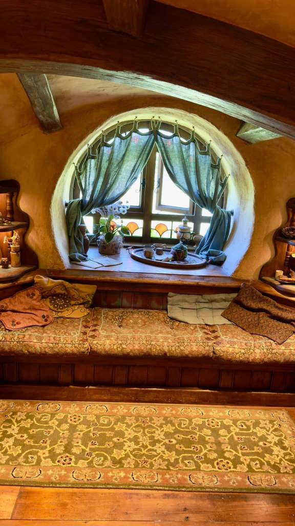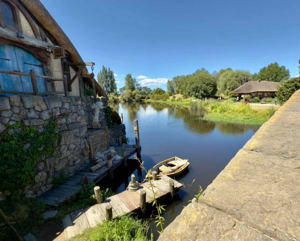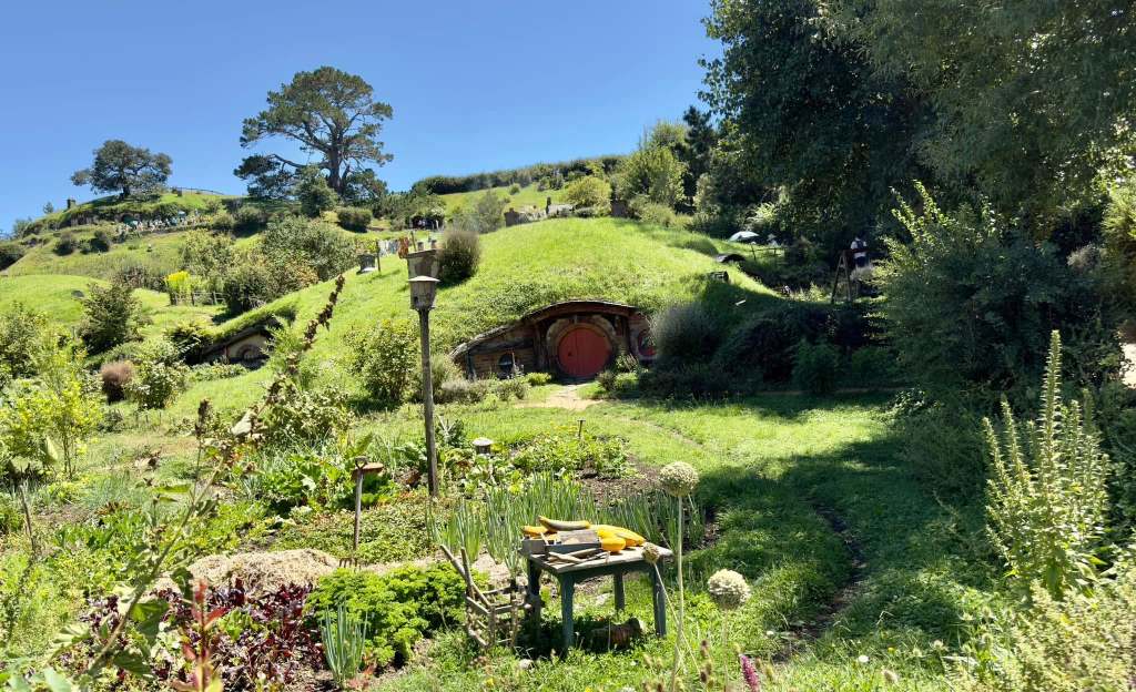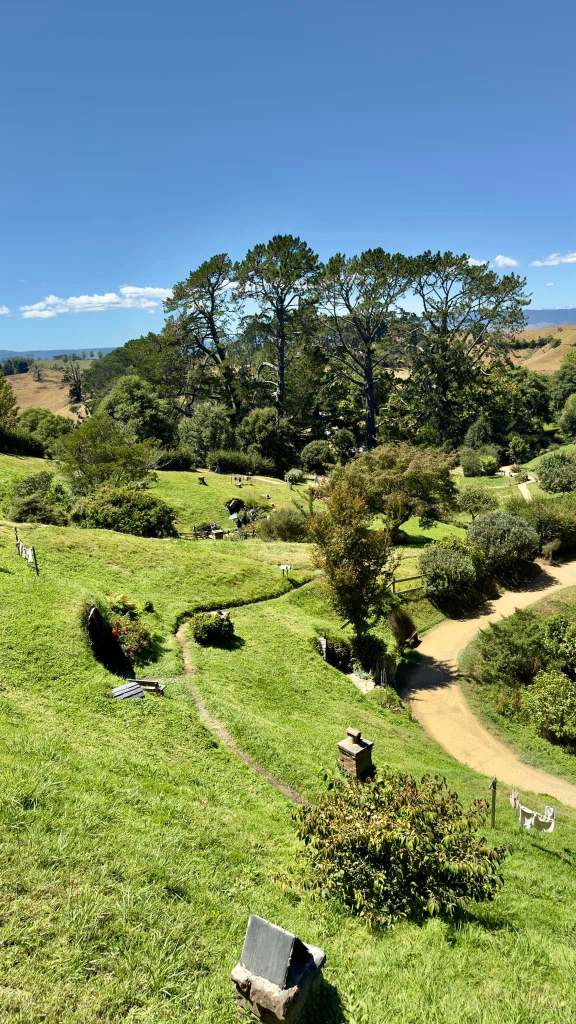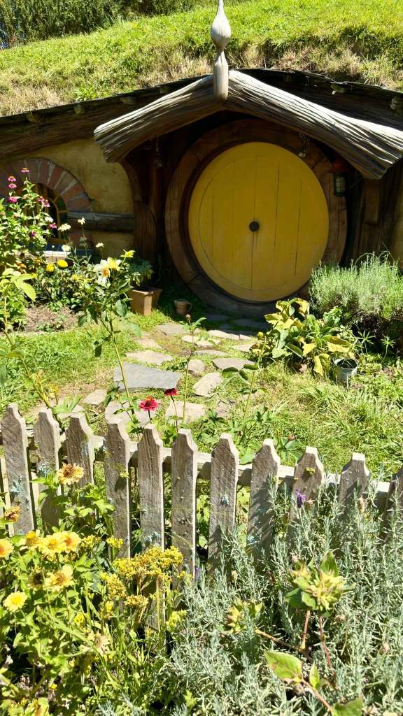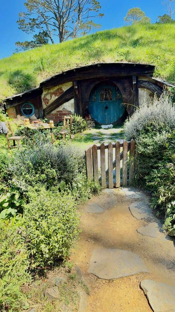 The hobbit village was originally made to be temporary and after the movie they were removed. When the movie made a bigillion dollars the Anderson family and Peter Jackson teamed up to recreate the hobbit village and two buildings that you could actually go inside. This hobbit village was only used for the exterior shots in the movie. All of the inside shots were made in a studio in Wellington. The Proudfoot family home was created here in 2013. It is very impressive. I will try to upload the video.