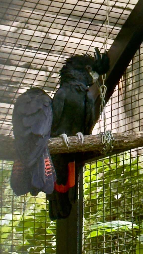 Australia brushturkeyBlack cockatoo.Flying fox (not currently flying)