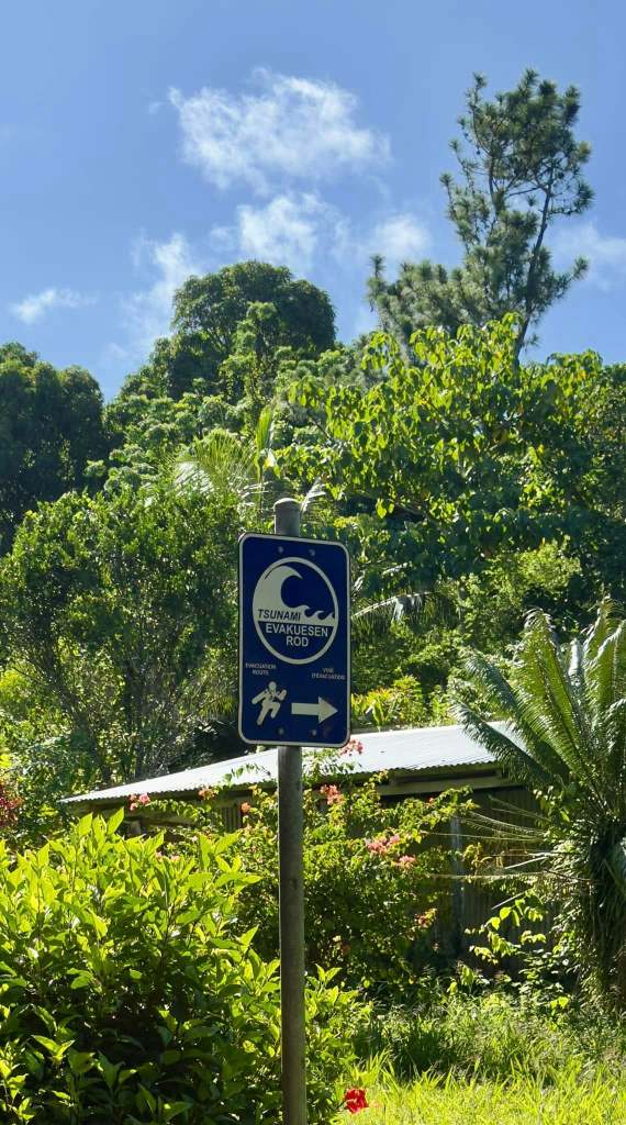 The quintessential tropical island That warning sign puts a bummer on the whole tropical paradise thing. We were told today that the islands of Vanuatu have 4 underwater volcanoes and 8 or so run of the mill volcanoes. Punctuated by some 500 earthquakes each year.