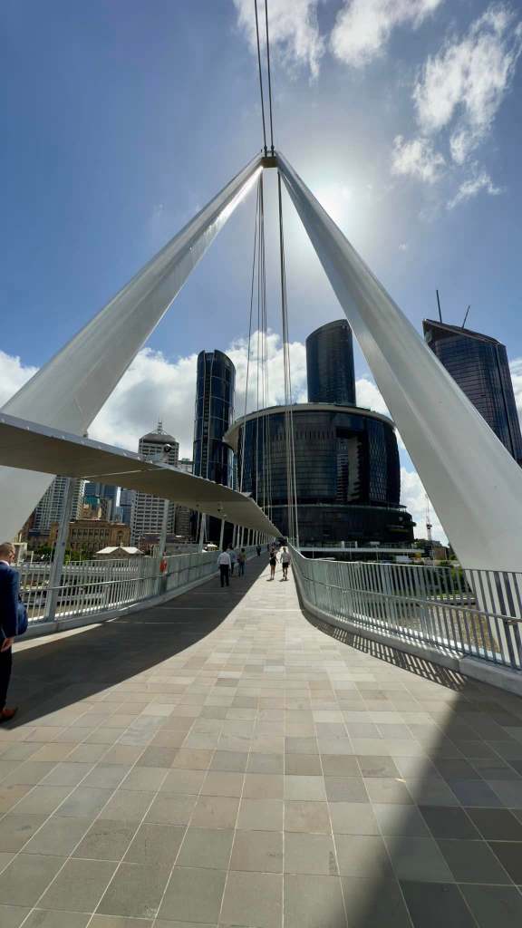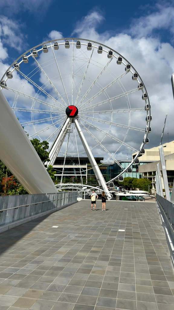 Another block brought me to the Queens Wharf and the pedestrian bridge going over the Brisbane River. So I took a stroll across to the other side where the performing arts center was and also a pretty cool Ferris Wheel.