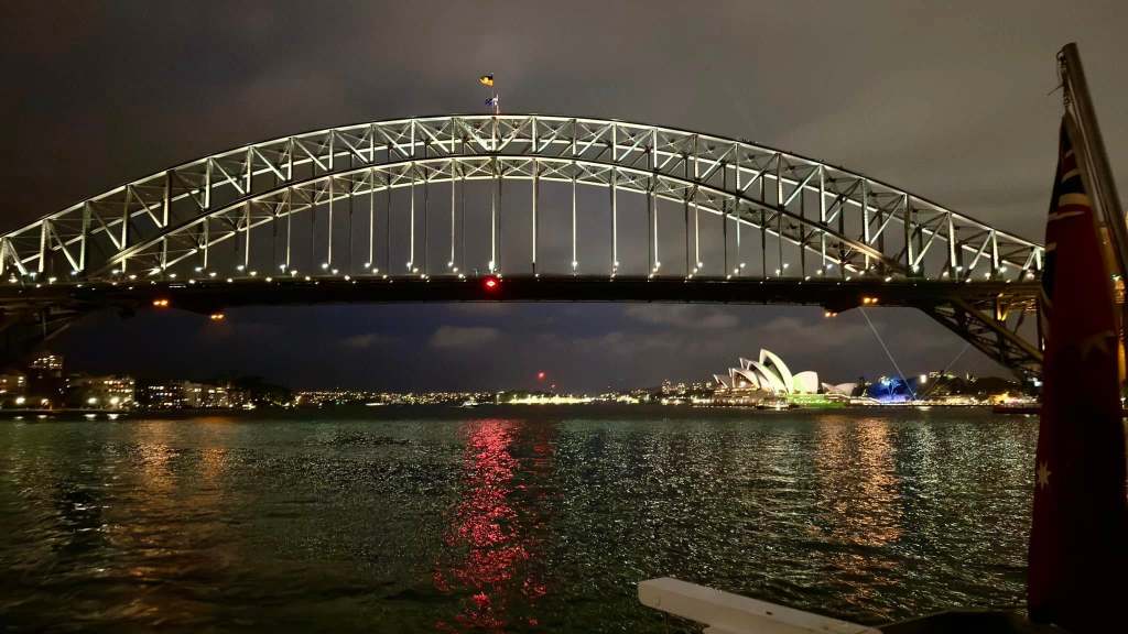 Arriving in Sydney we boarded a coach and it took us to the city harbor and we enjoyed a lovely dinner and an even lovelier harbor cruise. Sydney harbor is indeed one of the most beautiful harbors in the world. Hong Kong harbor might give Sydney a run for first place.