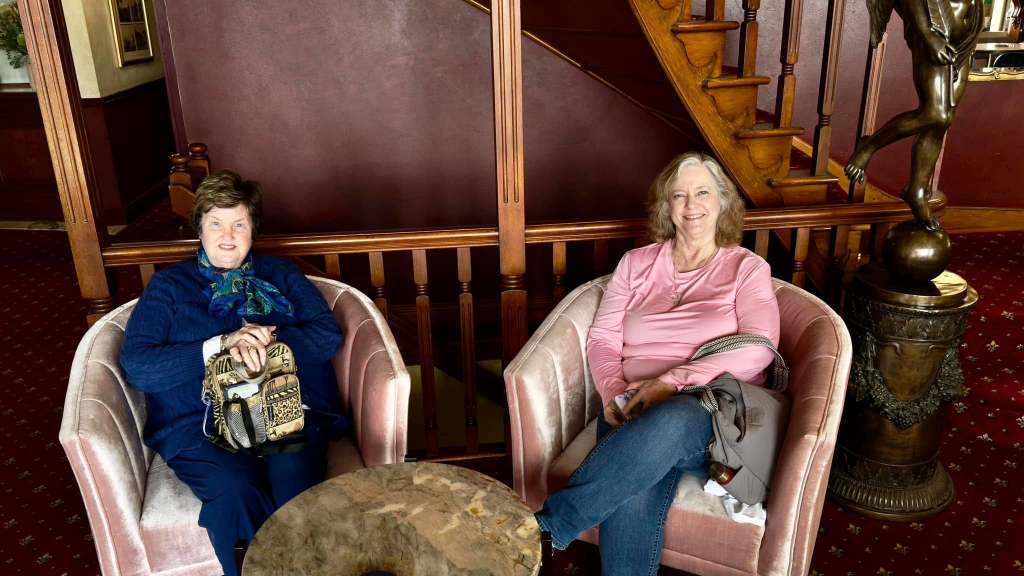 We ate breakfast in the world cafe. I arrived first and found a table. I texted the others where I was. “I am sitting starboard near the bow.” I was trying to communicate with Frank our resident Naval veteran. I was half correct I was on the starboard side the right side as you face the front of the boat. My mistake was the cafe is at the stern not the bow. We all found each other.