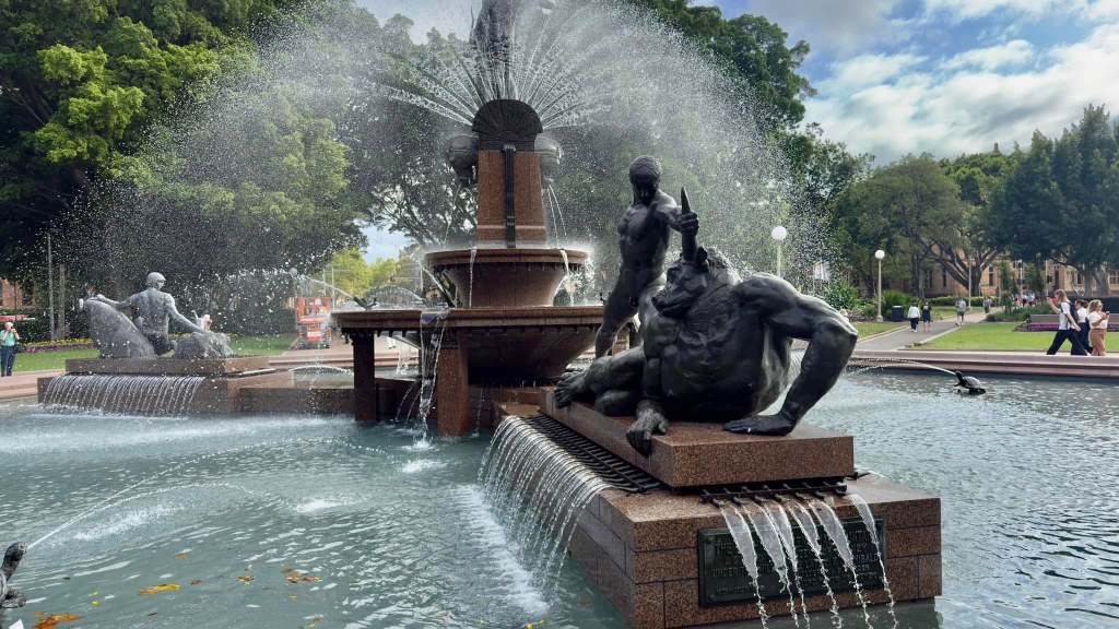 Our last day under the gentle and funny care of Dan the leader of the Koala’s. He has been ever so helpful and knowledgeable. We woke up in Sydney this morning and after we saw that our luggage was down from our room, Dan took us on a walking tour of the area around our hotel. We were taken into Hyde park. Being part of the British commonwealth the good citizens of Sydney found it much easier to name places in Australia with the same names as in Jolly ol’ England. The morning was very pleasant.