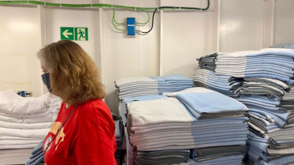 Tons of folded laundry ready to be put to useFrank and Jeanette very attentive to our laundry master