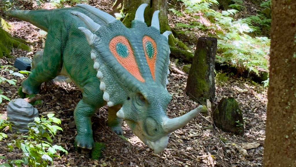 Our next stop was an abandoned coal mine area which just happens to be in a rainforest that is full of plant species that have been in existence since before the age of the dinosaurs. They have created a boardwalk through the rainforest and placed mechanical dinosaurs along the path with lots of hands on activities. Lots of four year old kids all talking in different languages but all clearly saying “Look, Mama, a velociraptor!”