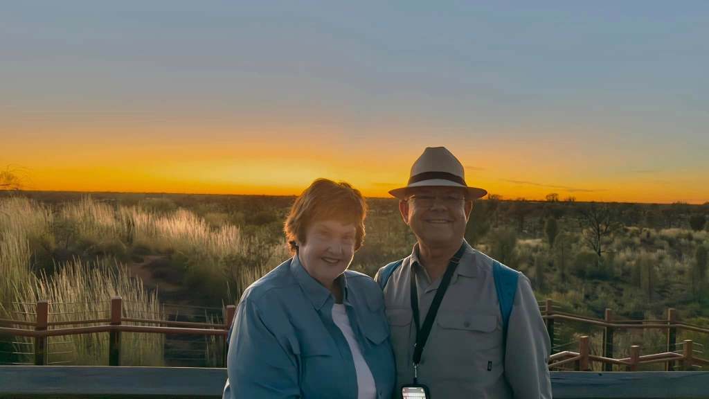 The sun is going to come up.Jeanette and Penny are readyJeanette and FrankMorning sun on Ulura (the original name for Ayrer’s rock)So as you should know, we ae not alone out here.