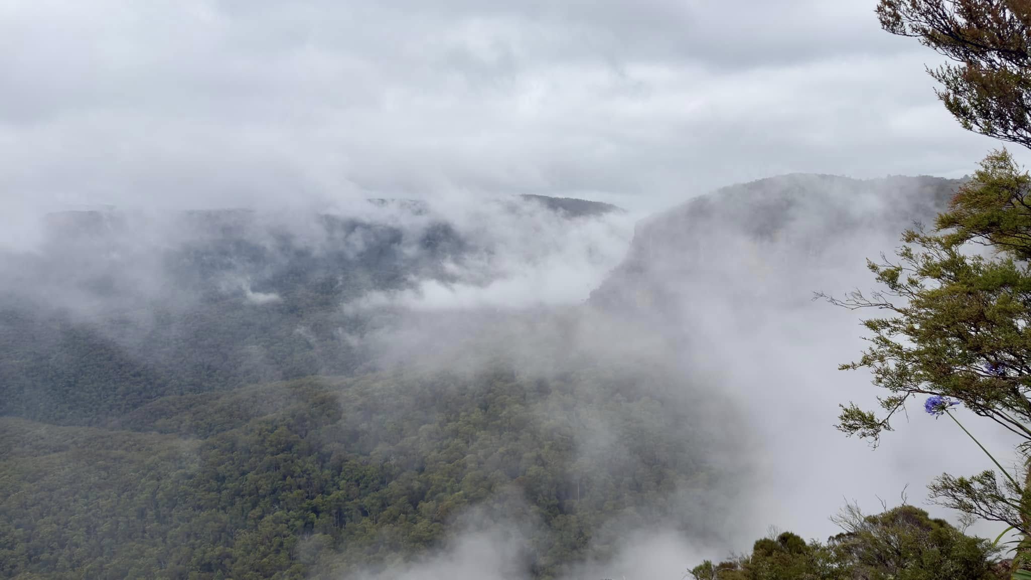 The offending cloudsI hope her majesty had better weather.the rainforestflowers in the rainforestFred. From the Barrett tv show from the 70’sAn ancient fern treeSaw BanksiaThe brother of the three sistersPink chair ladies at the hotel where we had lunchKatoomba fallsKatoomba fallsKatoomba fallsFern tree
