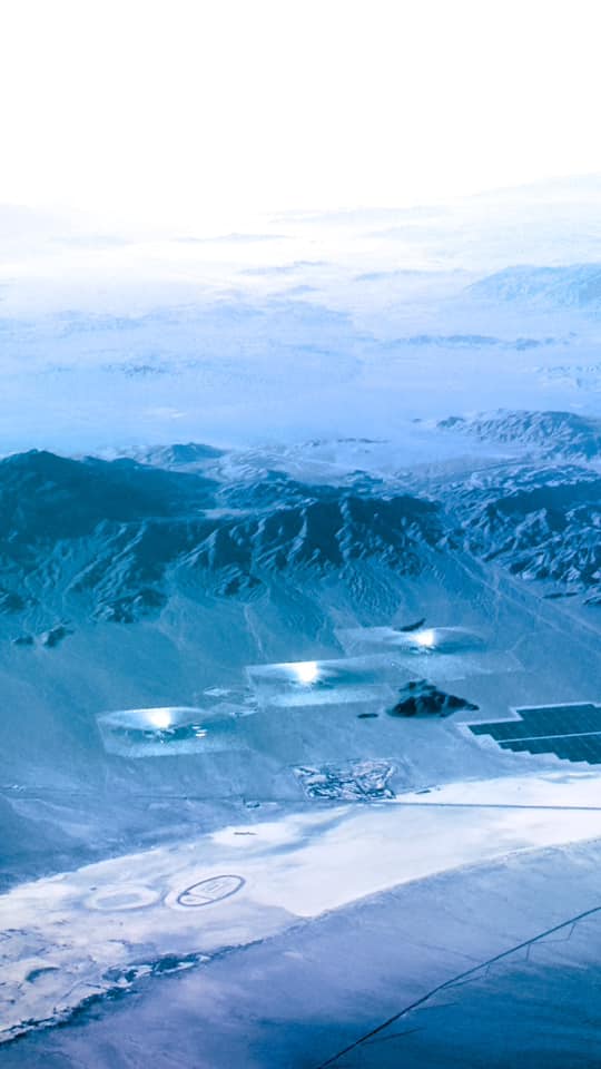 A snowy spotI think this was in southern Nevada. You can see part on a solar field. There were several. Then there were three bright lights. The picture is dark but it was bright sunshine and the lights were very bright.Downtown Los Angeles