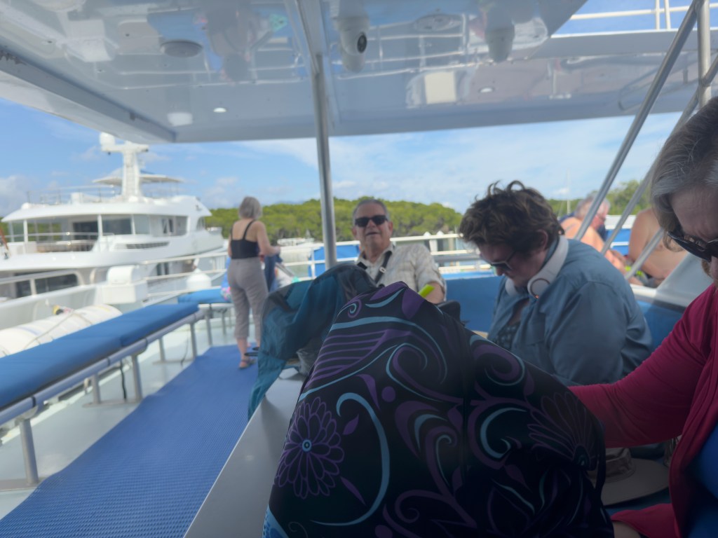 We concluded doing the Hoochy-Coochy and manage to get our suits on. Then it was over the back of the boat, where there is a 4 step stairway into the water.