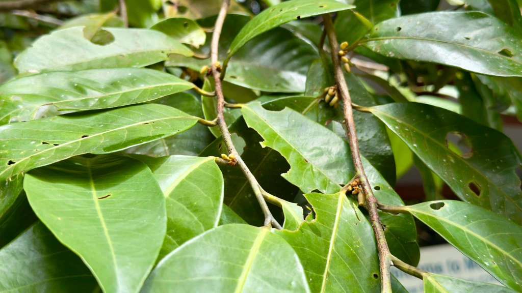 Cannonball trees have these seed pods. The tree produces a gas that builds up inside the pods until the pods explode and drops the seeds. They are said to sound like cannon fire.